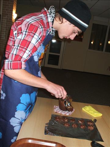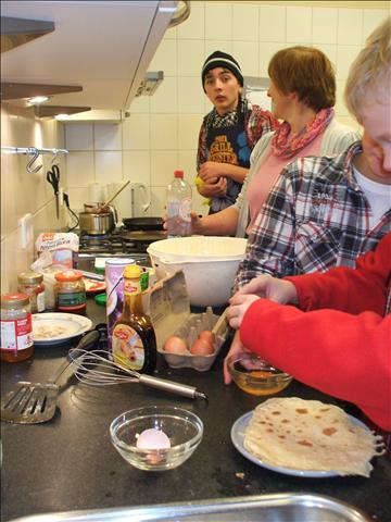 Vrijdag, 18-11-2011, hebben we de avond in de keuken doorgebracht. Aansluitend op het jaarthema 'Liefde' gingen we niet voor onszelf, maar voor de ander aan de slag. En met allerlei lekkers voor je neus was dat toch wel een hele opgave! Er werden pannenkoeken gebakken en er zijn pindarotsjes gemaakt. Bij kokkerellen hoort afwassen, maar dit vond niet iedereen even leuk om te doen. Nog een geruststellende mededeling in geval van nood: de rookmelder is getest en produceert genoeg decibellen...