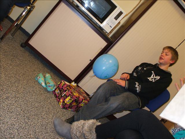 Vrijdag 2 december was er ook op de club een Sinterklaasfeest. Na een gezamenlijke maaltijd hebben we het Sint-spel gespeeld. Iedereen had een kado meebracht en dat werd in het midden van de kring gelegd. Om de beurt met een grote dobbelsteen rollen (lees: gooien! Want dat kun je verwachten...) om te kijken wat je opdracht zou zijn. Dat varieerde van een beurt overslaan tot een kado mogen uitzoeken. Op deze manier bleef het een verrassing welk pakje op jou lag te wachten. Lau had al snel heel wat kado's verzameld, maar na de opdracht 'allemaal 3 stoelen opschuiven' was hij de buit weer kwijt. Michèlle heeft het hele repertoire van Sinterklaasliedjes laten horen. Nick moest erg veel geduld opbrengen om ook eens aan de beurt te mogen zijn. We hadden pepernoten van Marjolein gekregen. Zodoende was ze er deze avond ook een beetje bij, we hopen dat ze snel weer met ons mee kan doen! De opdracht 'afwassen' werd bij dit spel niet getrokken, dus moesten we eind van de avond met z'n allen aan de slag. Niet zo leuk om te doen, maar het hoort er natuurlijk wel bij! Mocht iemand nog een keer een hulpje nodig hebben bij het afdrogen, dan weet ik er wel twee aan te bevelen...