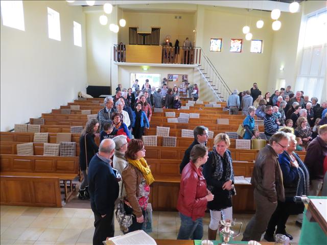 Tijdens het koffiedrinken na de dienst was het gezellig druk en zo kon iedereen met een goed gevoel van Samenzijn huiswaarts keren.